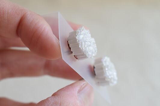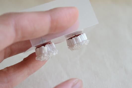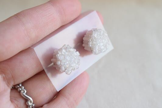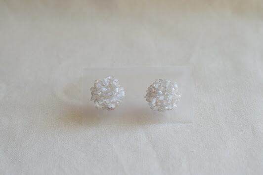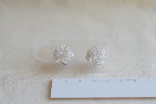 氷柱のようなサイドの白ビーズの並びが美しく、トップにもクリアなホワイトを合わせ、プレーンなかき氷のような色合いに仕上げました。