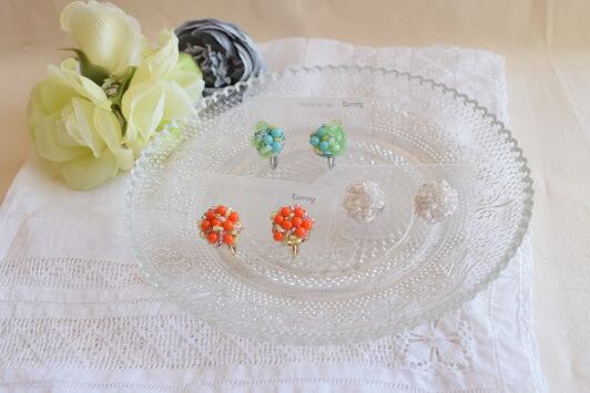 ヴィンテージビーズをふんだんにあしらった贅沢な耳飾り。