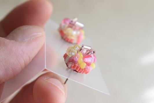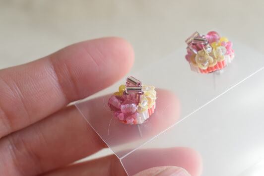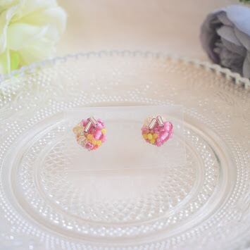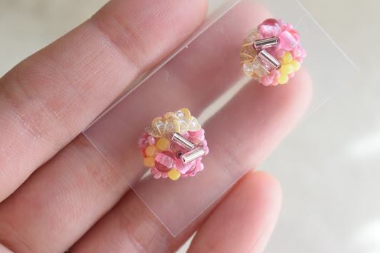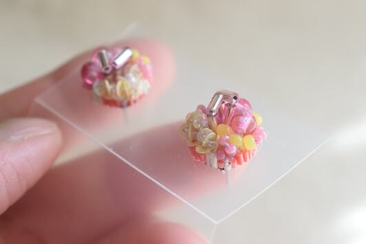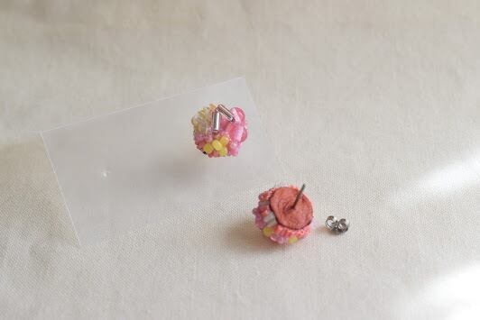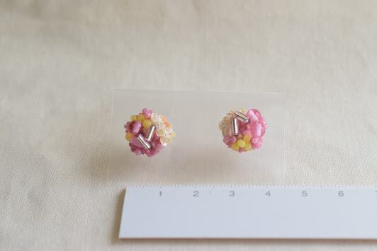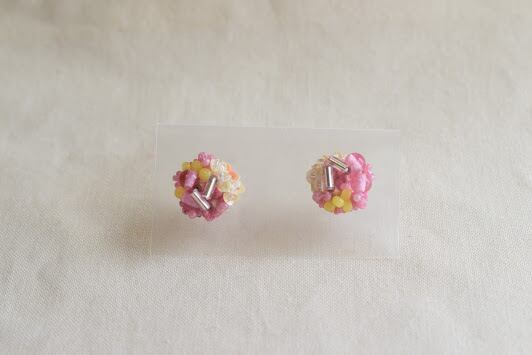 サイドにあしらわれた極小ビーズは、きれいに高さを出すために独自の縫い方をしています。子どものころ食べた甘い飴玉のイメージで配色しました。