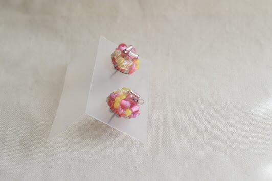 ヴィンテージビーズをふんだんにあしらった贅沢な耳飾り。