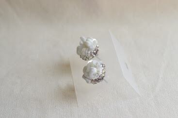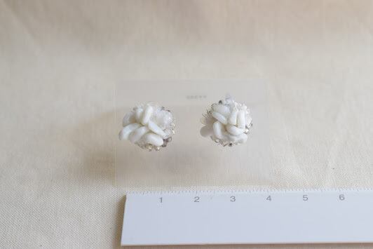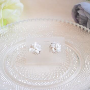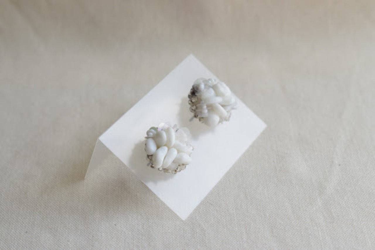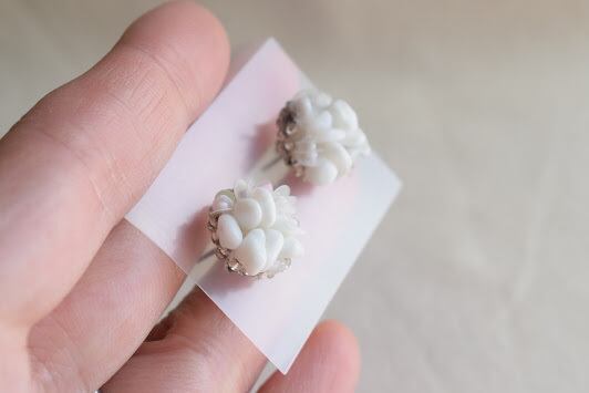 天然石のホワイトジェイドと、ヴィンテージスパンコール、ビーズをあしらった贅沢な耳飾り。
