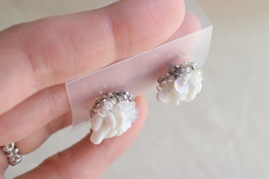 不透明の白が涼やかで、立体感を持たせて縫い付けたスパンコールが、軽やかにきらめきます。