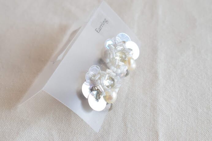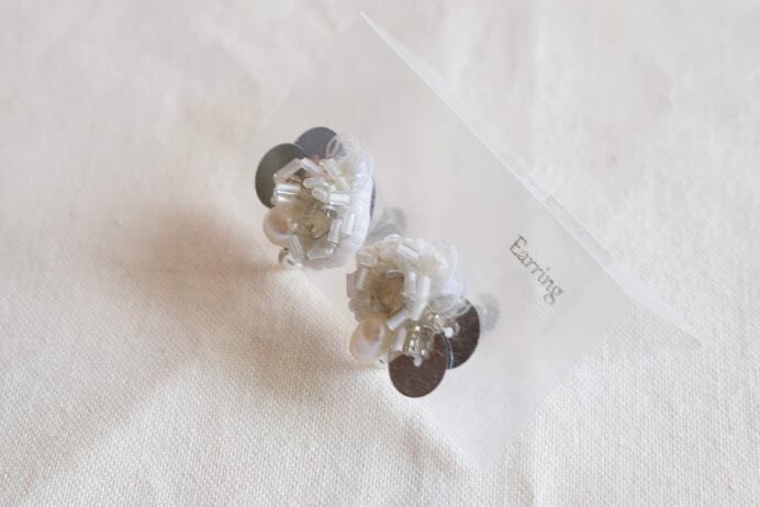 クリア~ホワイト~シルバーを組み合わせたイヤリング。